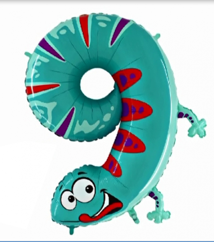 Motiv Zahl 9 Animaloons Gecko Rundballon