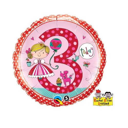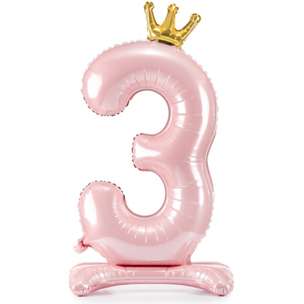 Zahl 3 Prinzessin / Rosa mit Standfuß